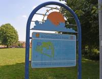 The railway forms a boundary on one side and a path runs through the park onto a housing estate. There is an attractive seating area in an open glade.