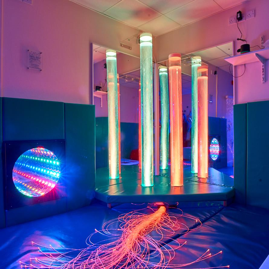 Our Light Sensory Room is a great facility which we love being able to provide for our special babies. During their stay with us, this room is available at any point and can be used for many purposes, especially to provide a calm and relaxing environment. The Light Sensory Room combines a range of stimuli to help develop and engage the child’s senses. This includes lights, colours, sounds & sensory soft play objects. It helps those with learning difficulties, developmental disabilities or sensory impairments learn to interact with the world around them, but in a safe environment that builds up their confidence and their ability. It is also a safe place for them to explore in, as the soft play equipment means there is no fear of injury for the child.